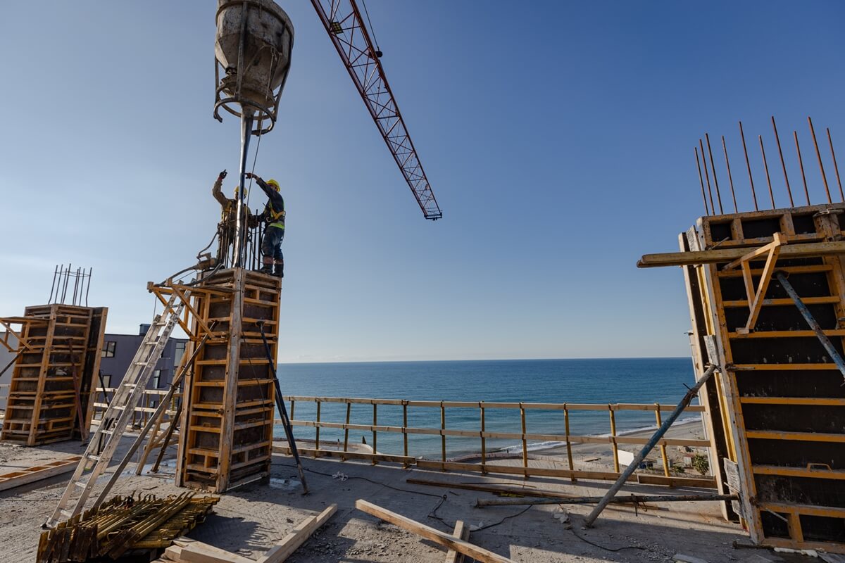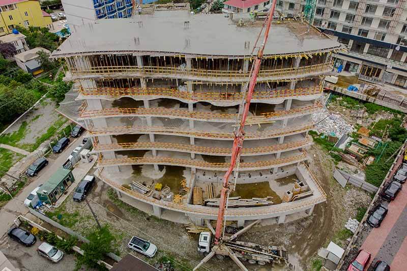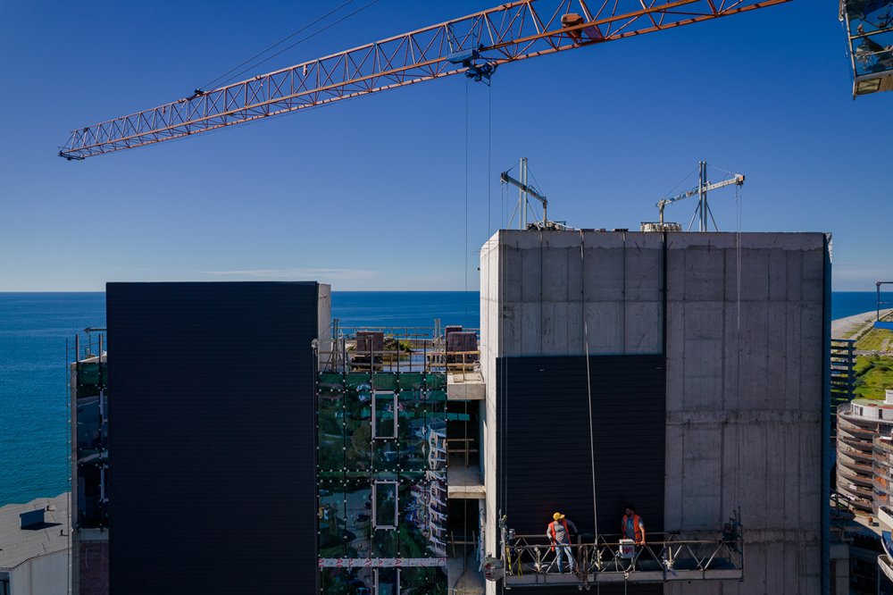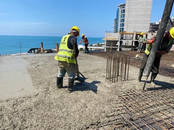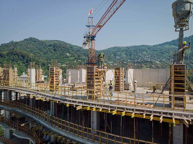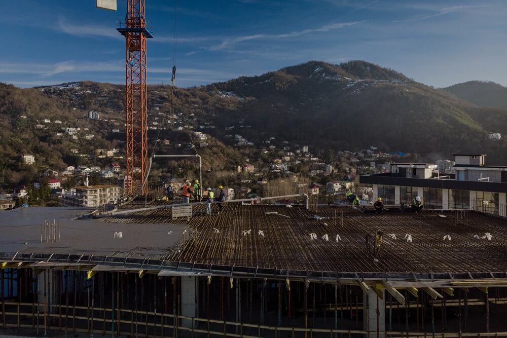 მიწისზედა სამუშაოები: მზიდი კარკასის მოწყობა, პირველი სართულის, აუზის, რეცეპციის, კაფეტერიის, 4 ბიზნეს შეხვედრის სივრის მომზადება